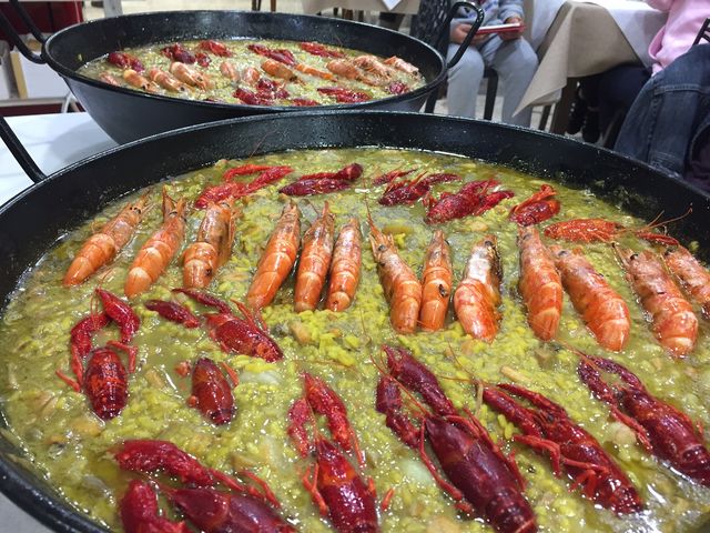 elaborado con pescados y mariscos como Rape, Gambas, Musola, Calamar, Sépia... y Arroz Bomba de Pego Reserve con antelación su Arroz